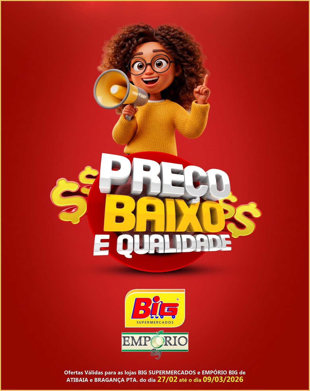 As promoções do Big Supermercado são válidas nas datas específicas nos folhetos, ou enquanto durarem os estoques. Planeje-se e não perca essa chance de economizar!